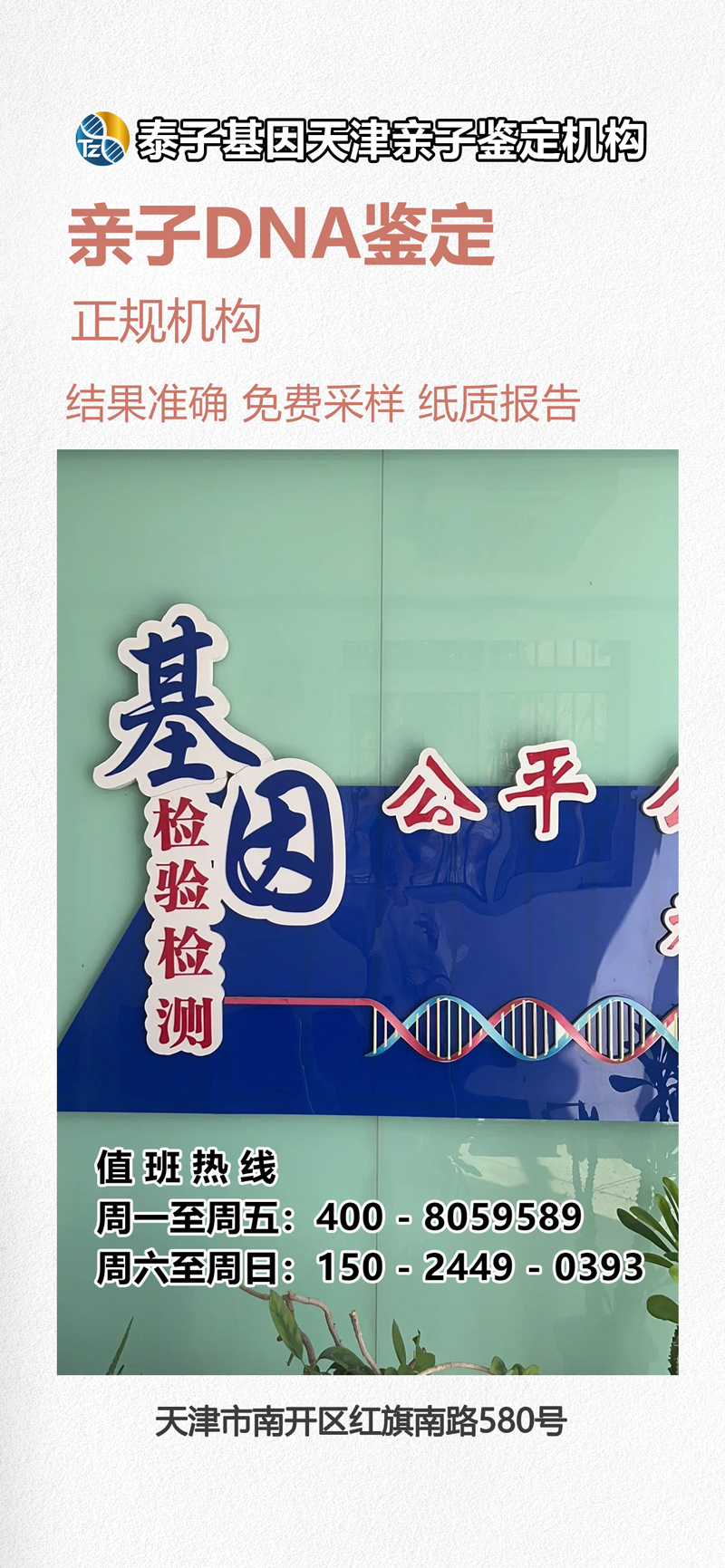 天津亲子鉴定中心最新地址,2024春节期间营业时间安排